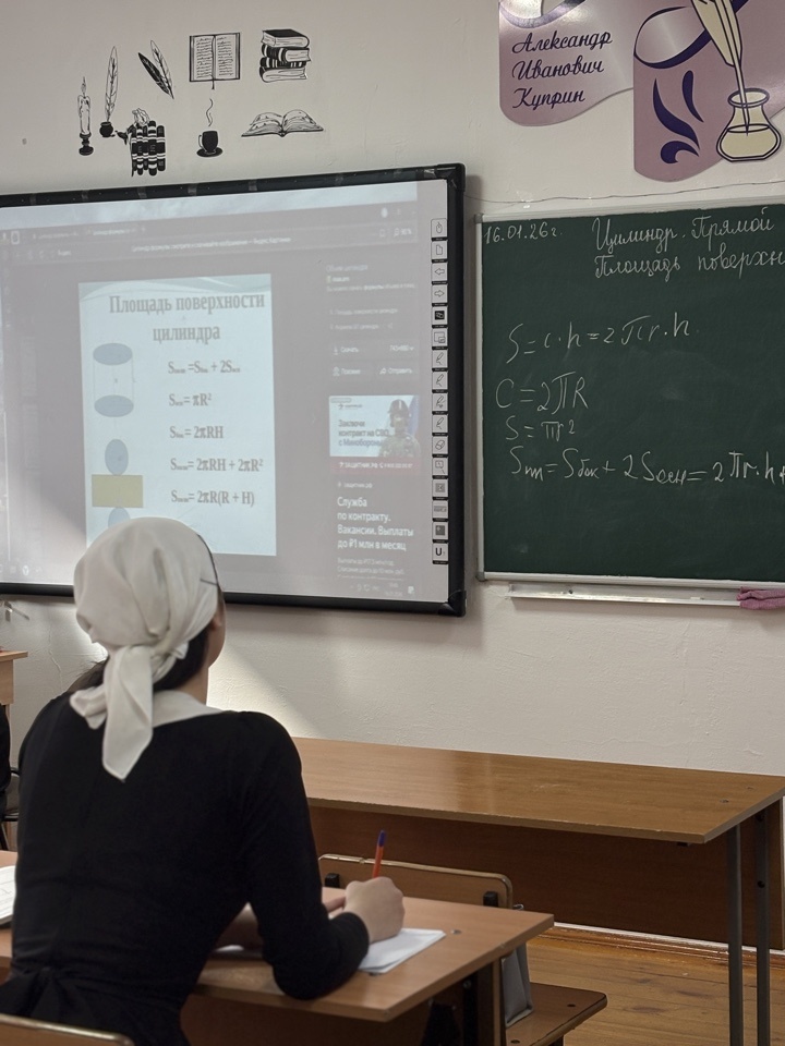 В ОАНО «Центр образования «Личность» 16.01.2026 был проведен урок геометрии в 11 классе на тему: «Цилиндр». На данном уроке обучающиеся 11 класса готовились к ГИА по математике, выполняя прототипы заданий ЕГЭ. Все дети работали активно