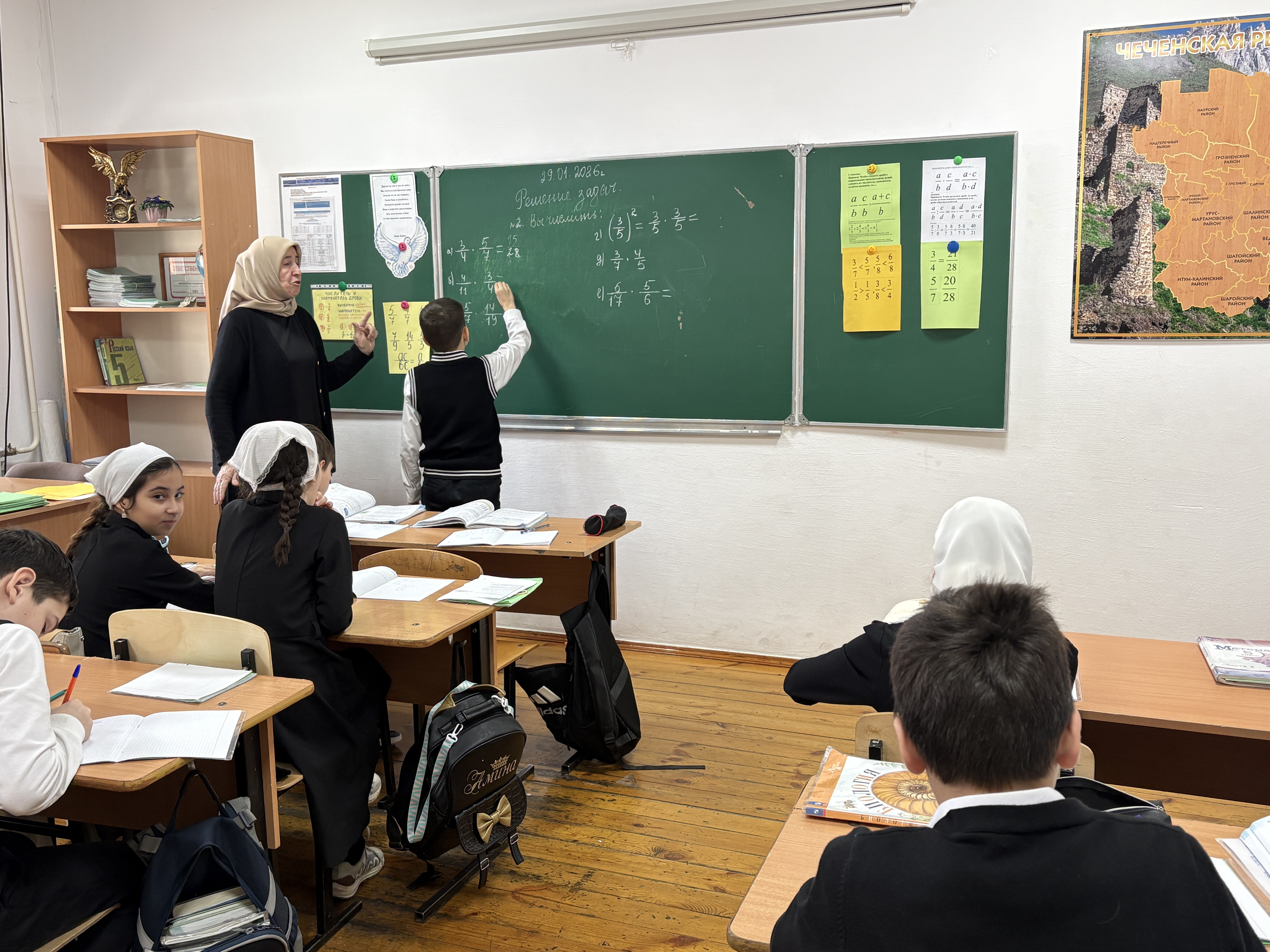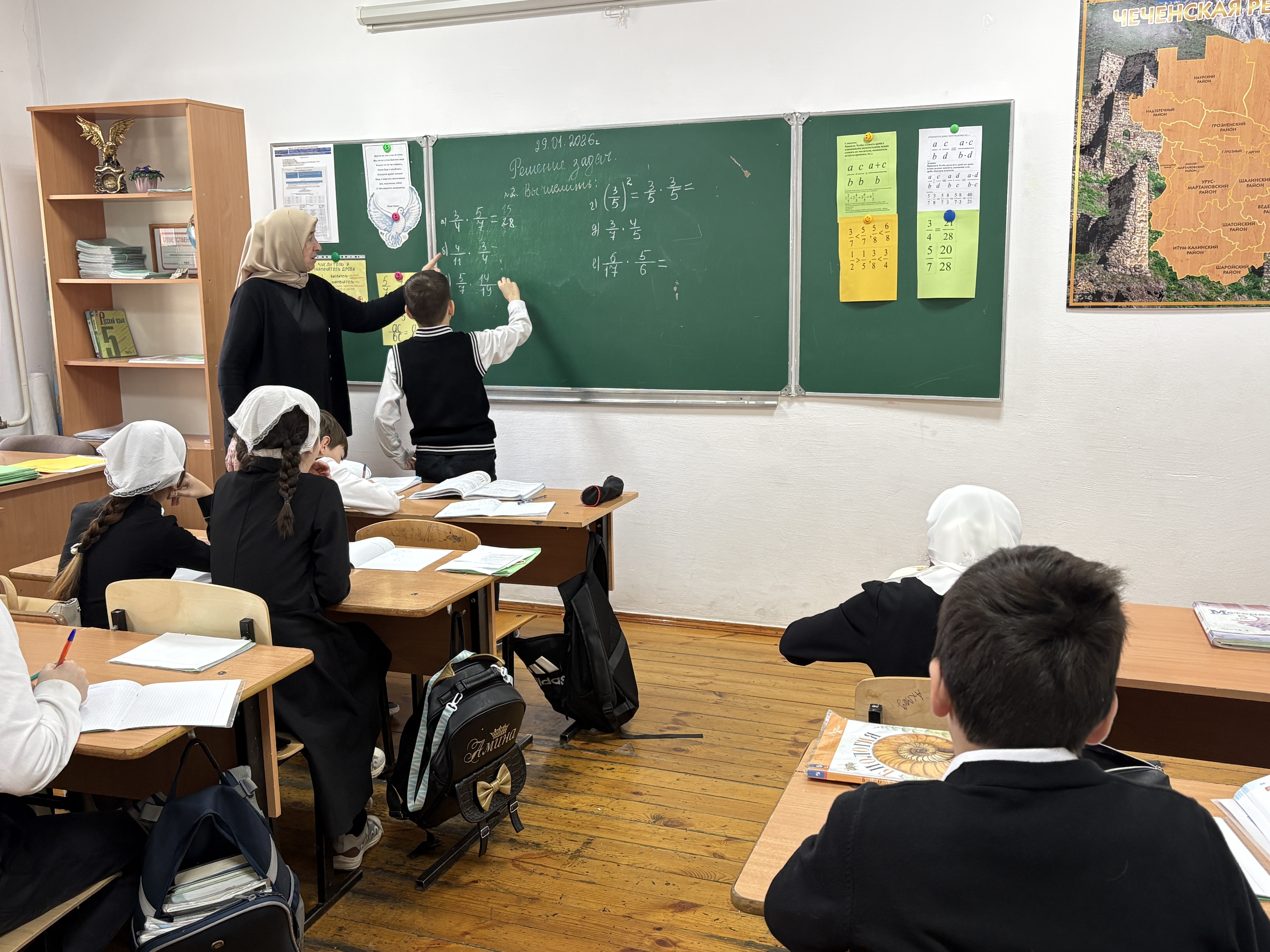 26 января 2026 в 5 «А» классе прошел урок математики по теме «Умножение и деление обыкновенных дробей» . Урок прошел в достаточно активном режиме, все учащиеся были вовлечены в учебный процесс, работа была организованна так, чтобы повысить познавательный интерес учащихся. Цель урока была достигнута