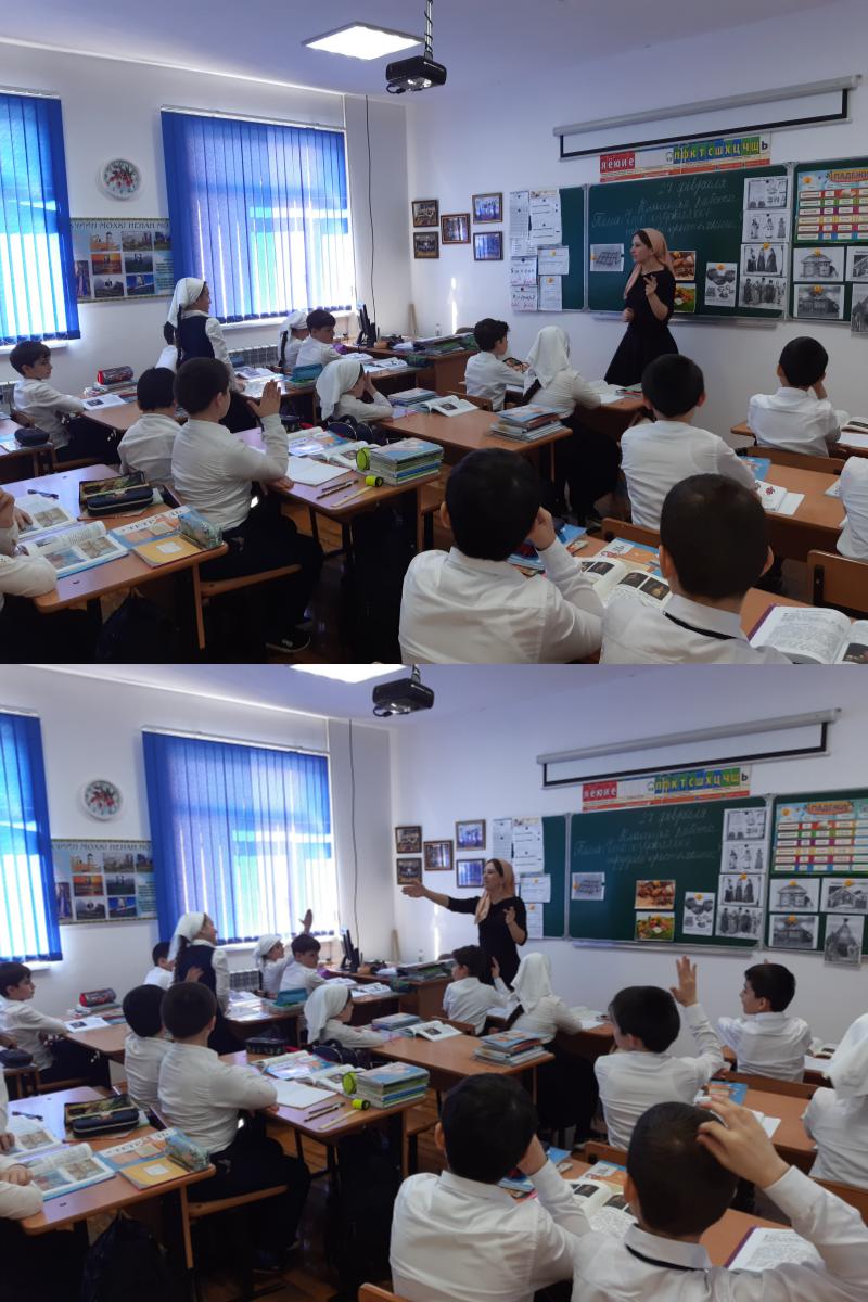 27.02.2020«Что создавалось трудом крестьянина?» так звучала тема на уроке окружающего мира в 3»Е» классе, учитель Дабачхаджиева Лаура Рамзановна. В ходе урока учащиеся узнали о жизни, быте и труде крестьян, об особенностях крестьянского хозяйства, познакомились с различными орудиями труда. Урок прошёл в оптимальном темпе, этапы были логически связаны друг с другом, что позволило формировать интерес к изучению исторического материала. Активизация новых знаний включала в себя целеполагание с выходом на самостоятельное изучение нового материала и отработку умений. Новое знание дети получили в результате работы с текстом учебника, терминами и иллюстративным материалом, под руководством учителя. Новые факты они пытались выразить своими словами. На протяжении всего урока прослеживаются межпредметные связи (география, история), применяются различные методы организации и самоорганизации образовательного процесса. В результате активность обучающихся на всех этапах урока прослеживалась высокая, основной материал усвоен в достаточном объёме.