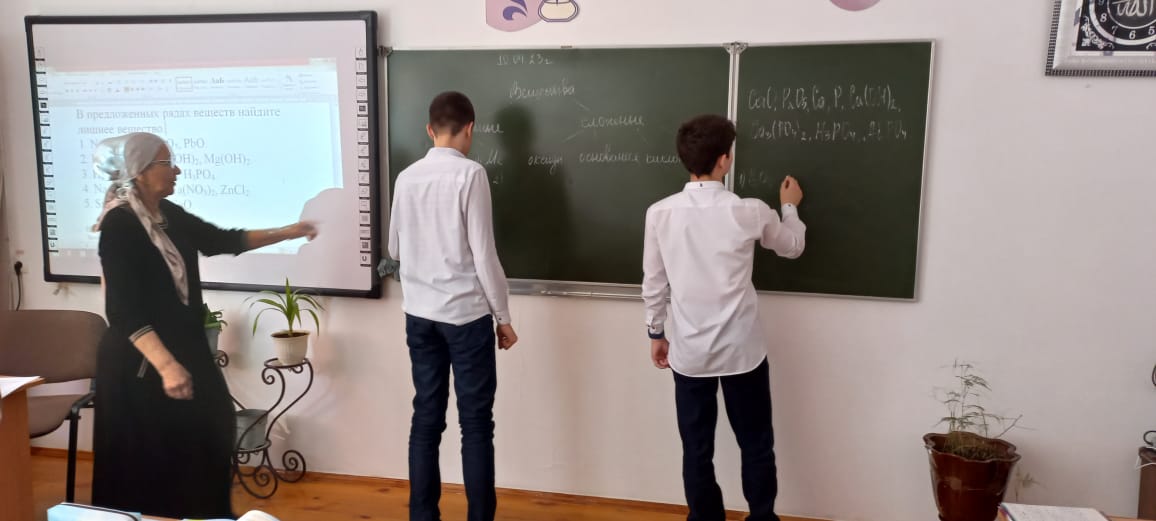 10.04.2023С 10 апреля 2023 года, согласно плана ВСОКО, в Центре образования проходит Неделя химии и биологиии.Открытый урок, в рамках Недели, провела учитель высшей категориии Исрапилова Р. Б.Тема урока: "Генетическая связь неорганических веществ".По своему содержанию и форме подачи материала, урок отвечает современным требованиям.Организация начала урока способствовала позитивному настрою обучаемых, поставлена цель урока.Основной этап урока прошел динамично и живо; ответы учащихся содержательны, а выводы учителя плавно переходят от одного к следующему. В ходе всей работы учитель дает оценку каждому ученику и на каждом этапе.Содержание учебного материала отличается научностью и практической направленностью. Урок соответствует требованиям ФГОС.