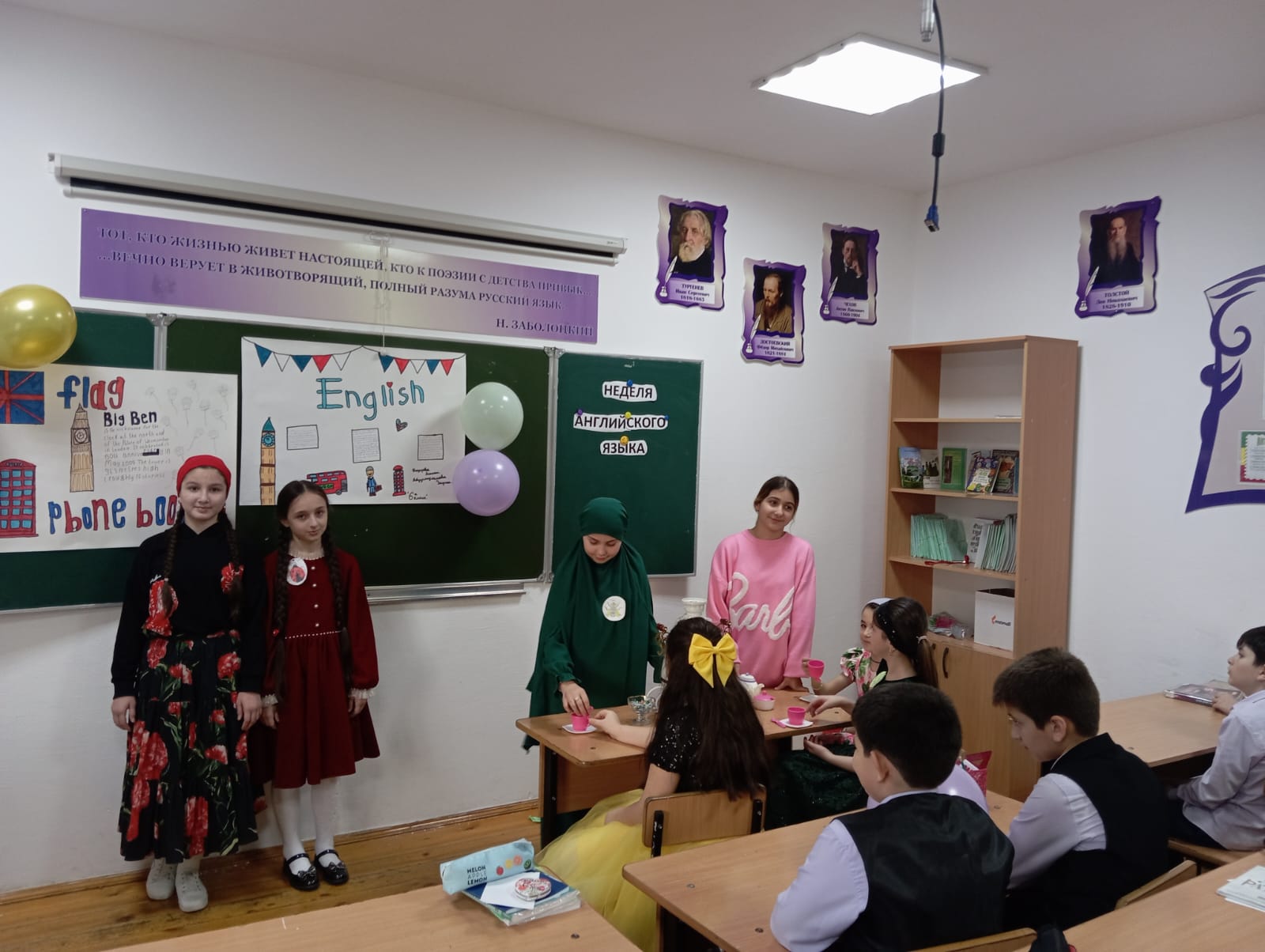 На неделе английского языка для ребят были организованы разнообразные мероприятия: викторины, сценки, интеллектуальные игры. В ходе мероприятия ребята получили положительные эмоции, научились коллективной работе.
