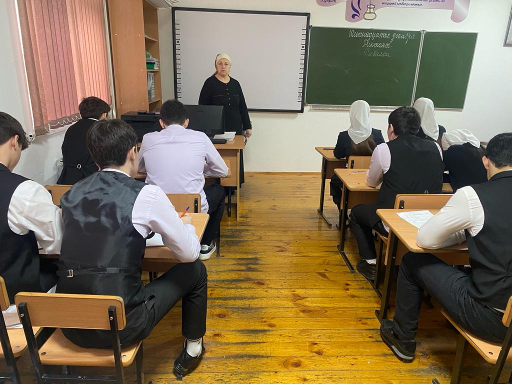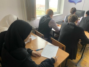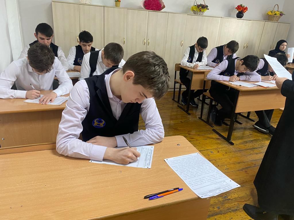 Учащиеся 9-х классов пишут республиканский диктант по русскому языку.