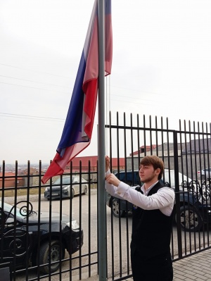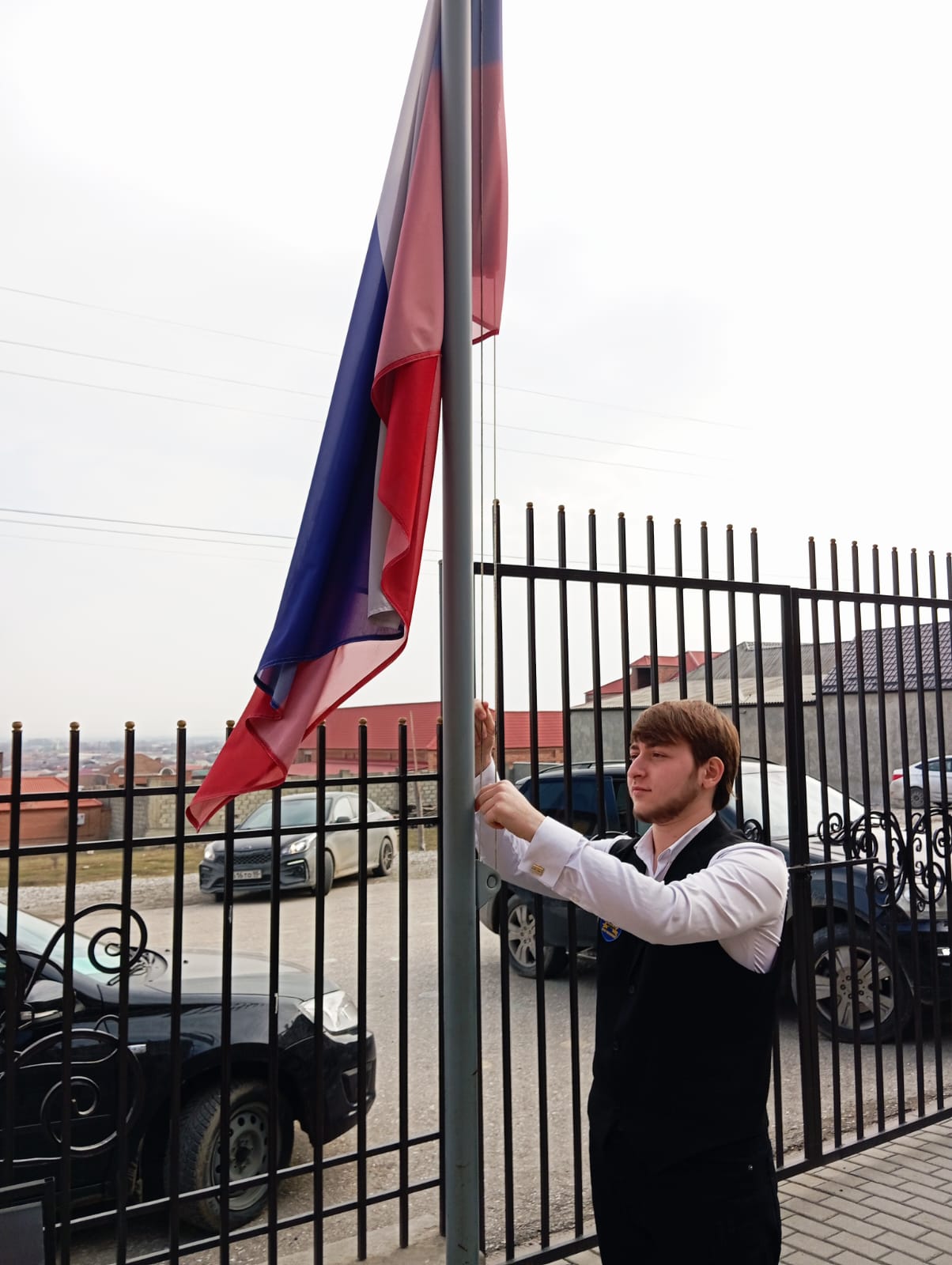Еженедельное поднятие государственных флагов ЧР и РФ.