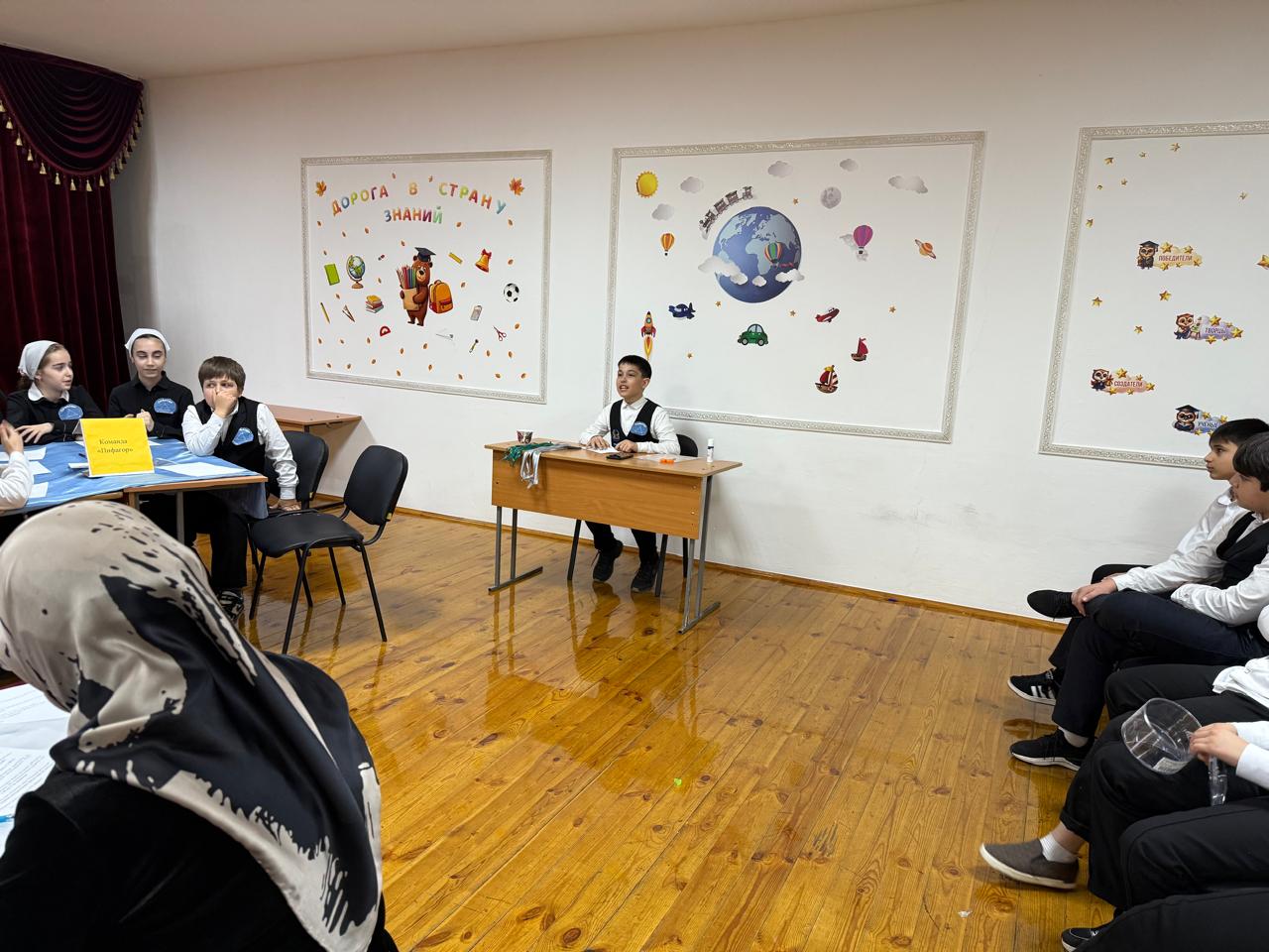 В викторине приняли участие учащиеся 5а и 56 классов Команды «Формула успеха» и «Пифагор» приняли активное участие в игре. Ребята с удовольствием принимали участие во всех этапах, были уверены в своих ответах и проявили смекалку, артистизм. Интересен был конкурс Капитанов. Ведущая викторины, Таиса Саладиновна Элитаева, постаралась формировать у детей чувство коллективизма, дружбы, вырабатывала внамание, волю и познавательный интерес